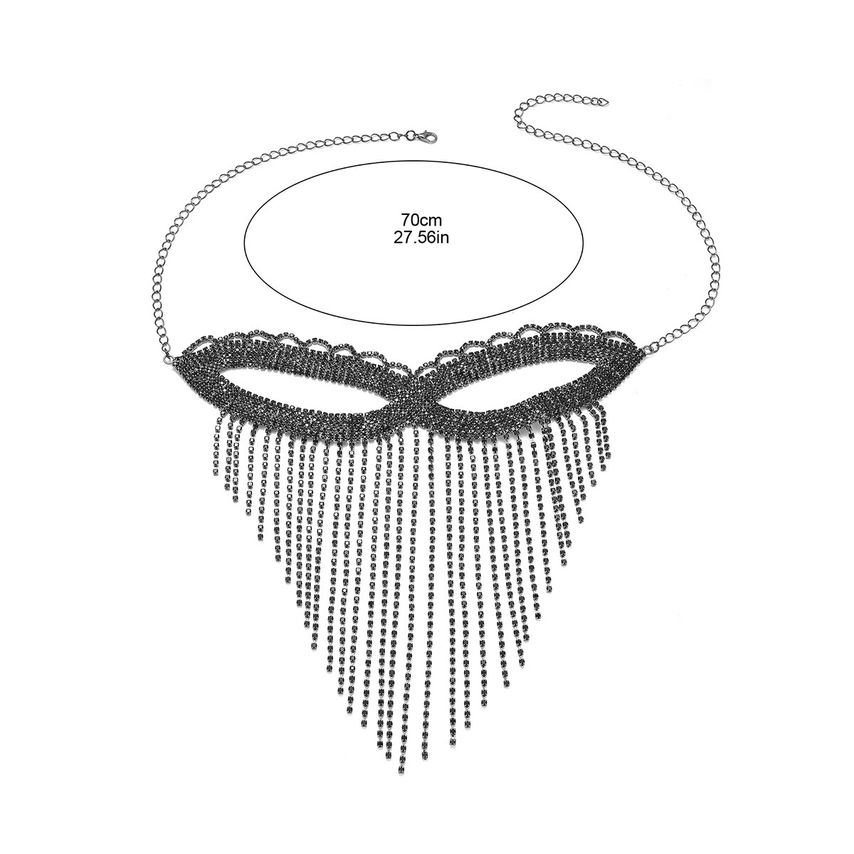 Add a dash of sparkle and charm to any outfit with the Dascha Rhinestone Tassel Mask. This playful accessory features delicate rhinestones and a fun tassel, making it perfect for adding a touch of whimsy to your ensemble. Stand out and shine with this unique and stylish mask.