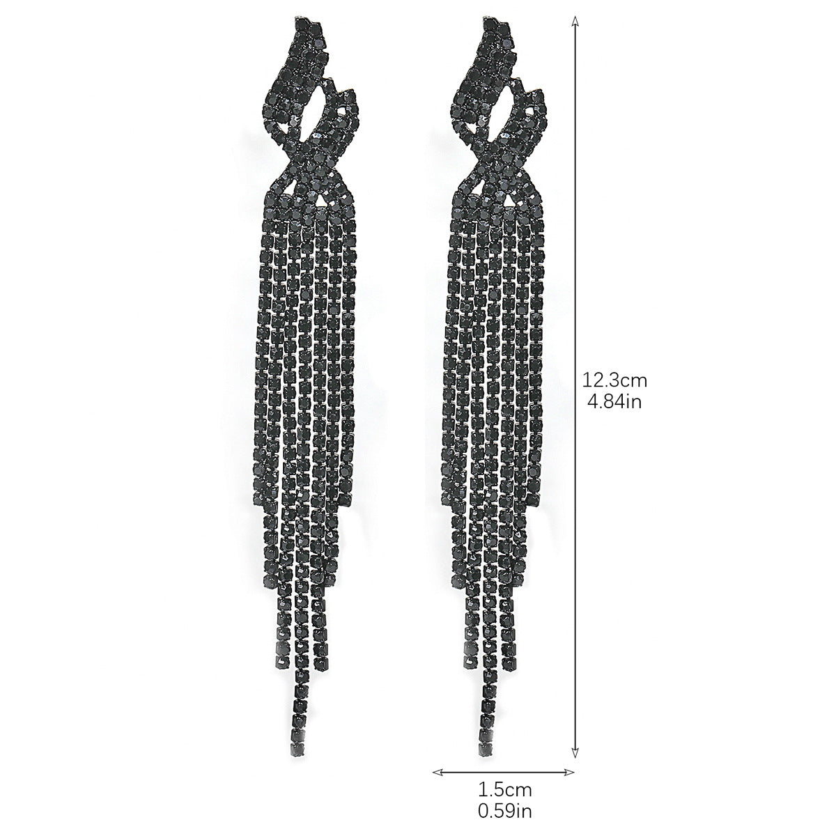 Add some sparkle to your outfit with Dunya Black Rhinestone Tassel Earrings. These unique earrings feature a playful tassel design and eye-catching rhinestones. Elevate your look and show off your fun and quirky style with these statement earrings.